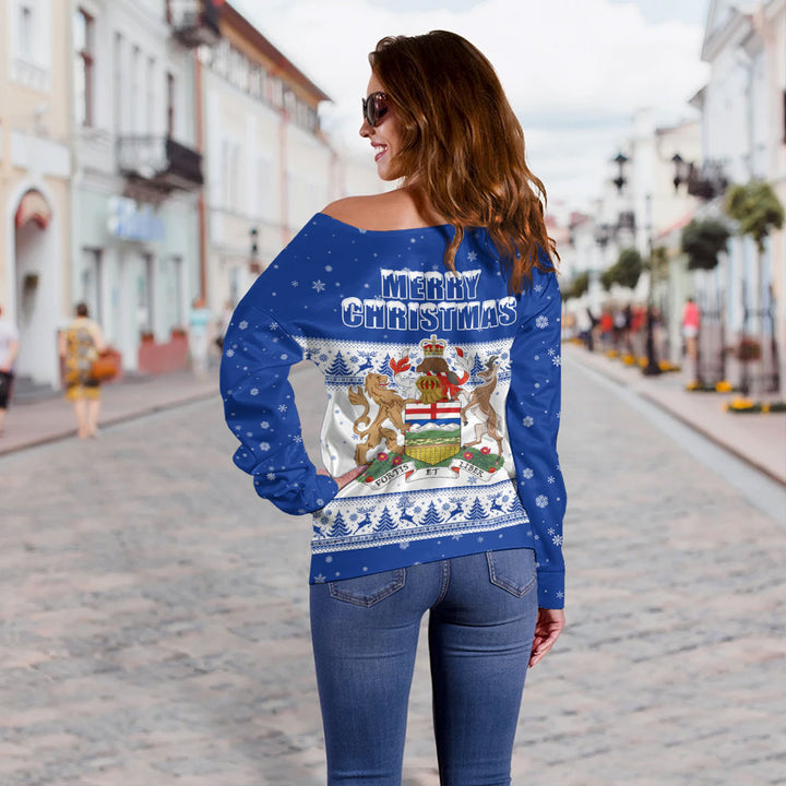 Alberta Off Shoulder Sweatshirt Christmas Knit Style Snowflake Reindeer