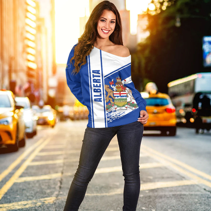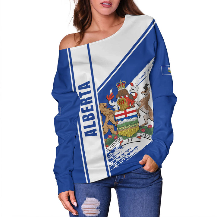 Alberta Off Shoulder Sweatshirt Heritage Strength Crest