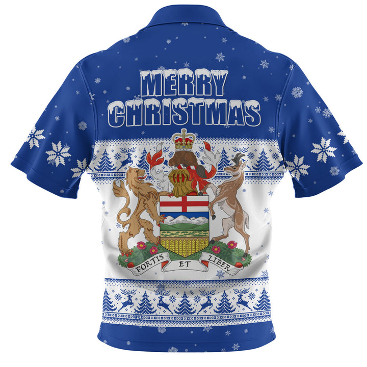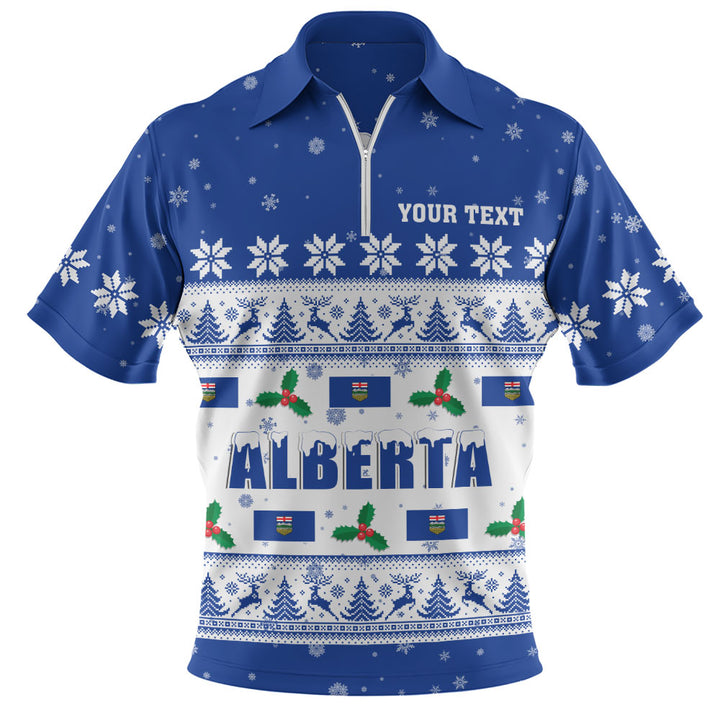 Alberta Zip Polo Shirt Christmas Knit Style Snowflake Reindeer