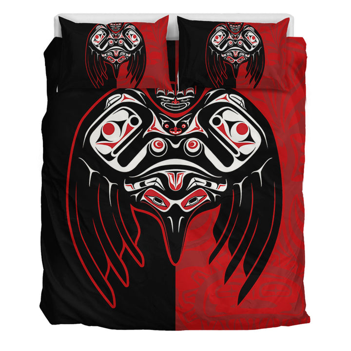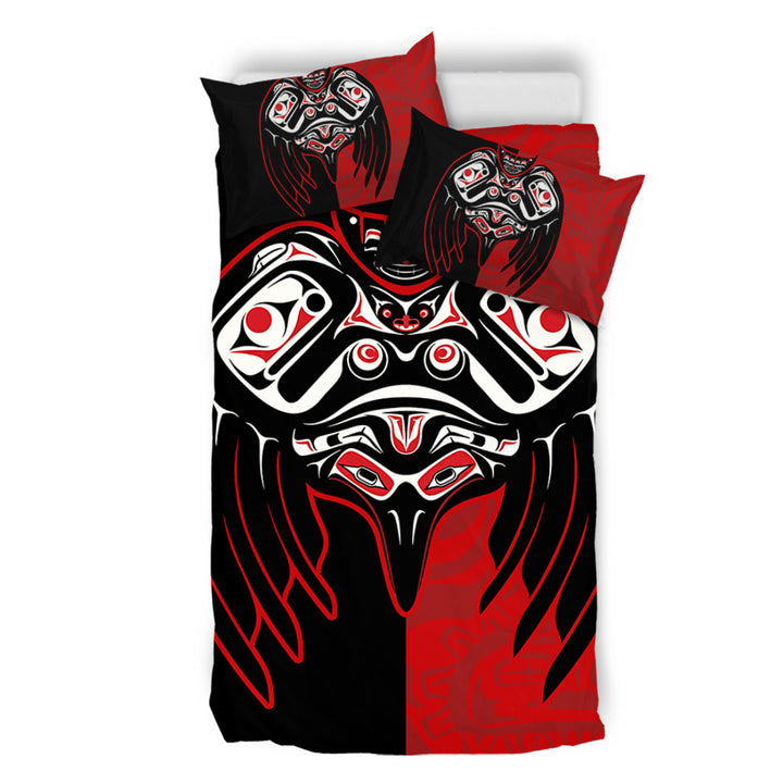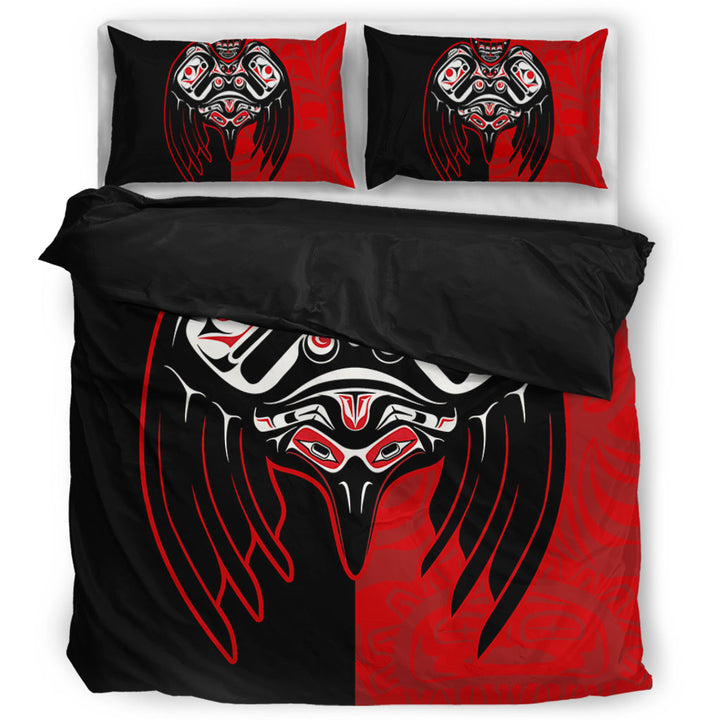 Canada Bedding Set Red And Black Haida Raven Guardian