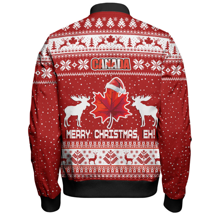 Canada Bomber Jacket Maple Leaf Merry Christmas Eh