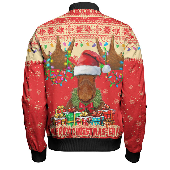 Canada Bomber Jacket Xmas Moose Lights Celebration