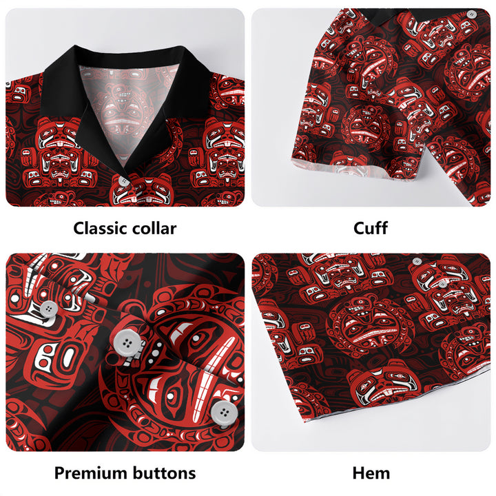 Canada Bowling Shirt Haida Spirit Face Totem Repeat Print