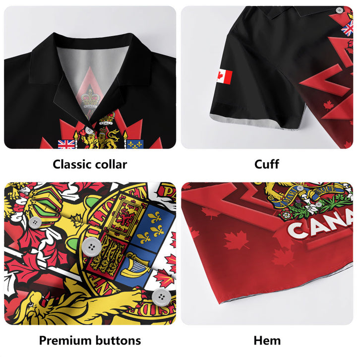 Canada Bowling Shirt Royal Red Black National Emblem Of Canada