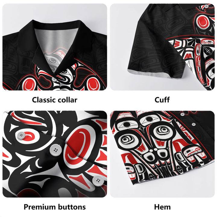 Canada Bowling Shirt Thunderbird Totem Legacy Black And Red Power