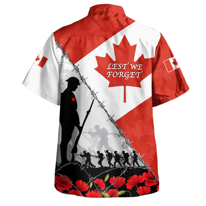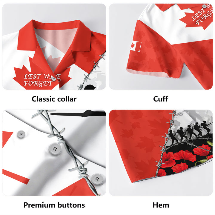 Canada Bowling Shirt Remembrance Day Poppy Flower And Barbed Wire