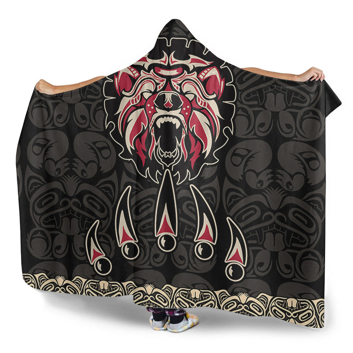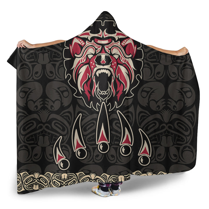 Canada Hooded Blanket Haida Tribal Roaring Bear Pattern
