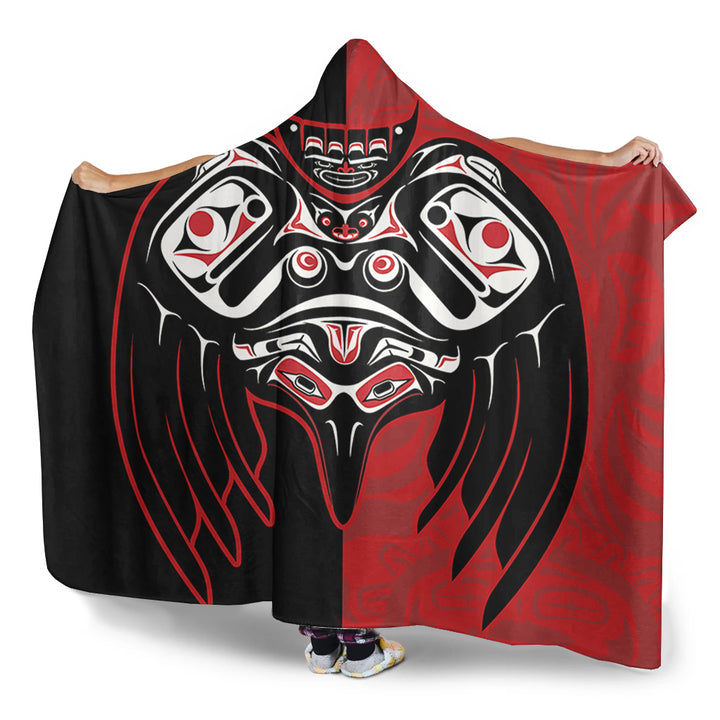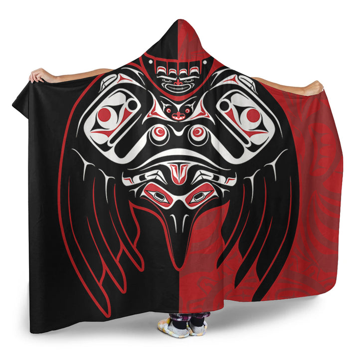 Canada Hooded Blanket Red And Black Haida Raven Guardian