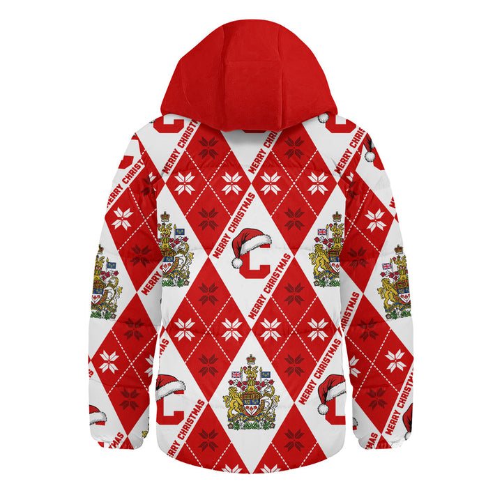 Canada Hooded Padded Jacket Christmas Argyle Pattern With Royal Crest