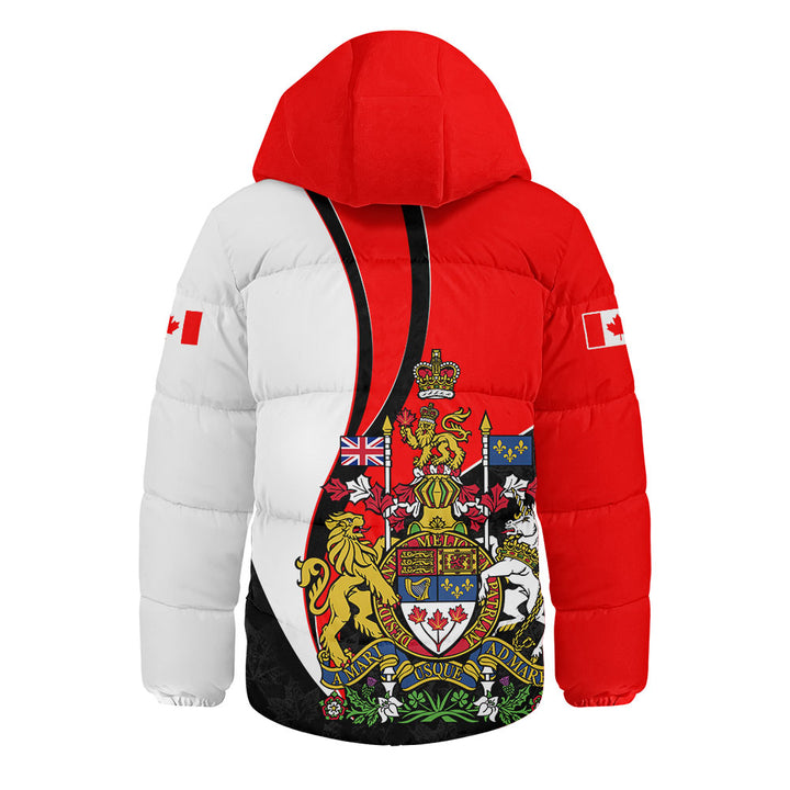 Canada Hooded Padded Jacket Maple Crown Crest With National Pride