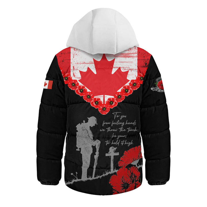 Canada Hooded Padded Jacket Remembrance Day Maple Poppy Honor