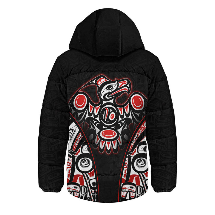 Canada Hooded Padded Jacket Thunderbird Totem Legacy Black And Red Power