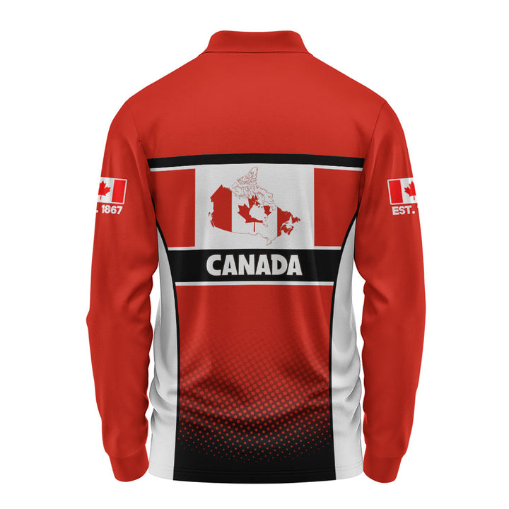 Canada Long Sleeve Polo Shirt Canadian Flag Heritage