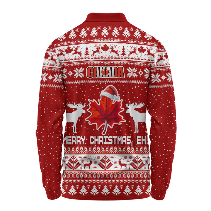 Canada Long Sleeve Polo Shirt Maple Leaf Merry Christmas Eh