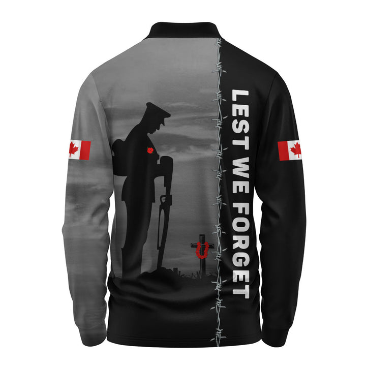Canada Long Sleeve Polo Shirt Remembrance Day We Shall Not Forget We Will Remember Them