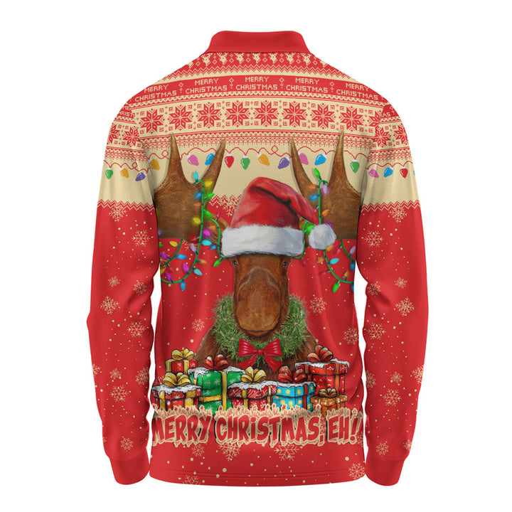 Canada Long Sleeve Polo Shirt Xmas Moose Lights Celebration