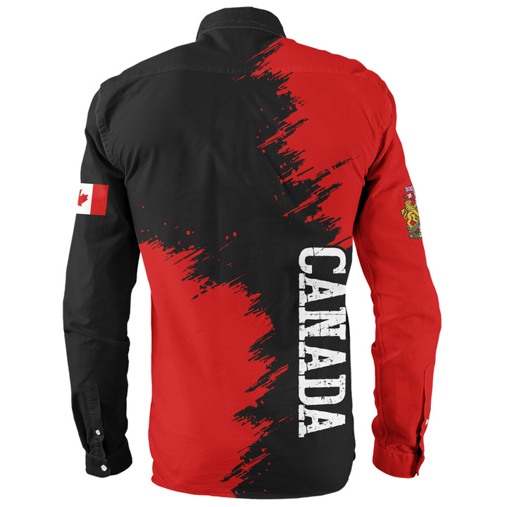 - Lapel collar, long sleeves, concealed placket, button closure.