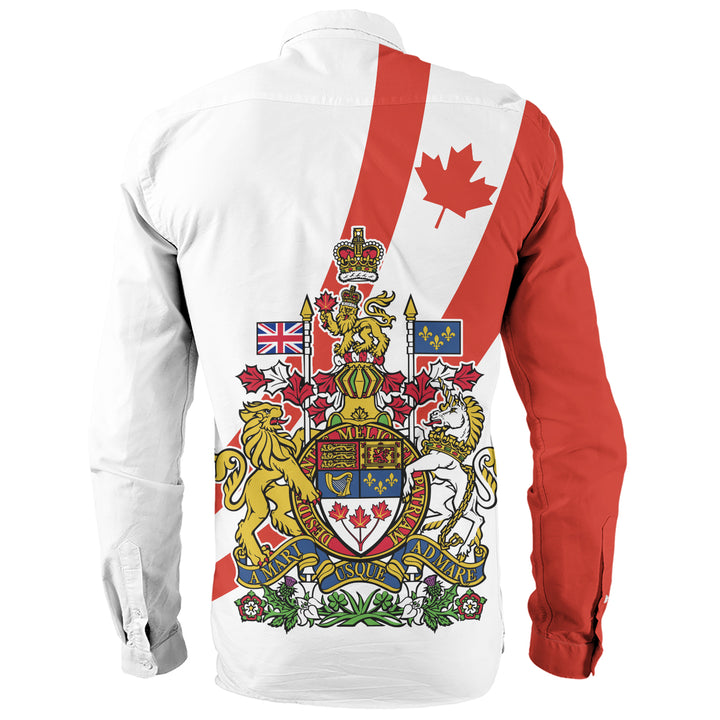 - Lapel collar, long sleeves, concealed placket, button closure.
