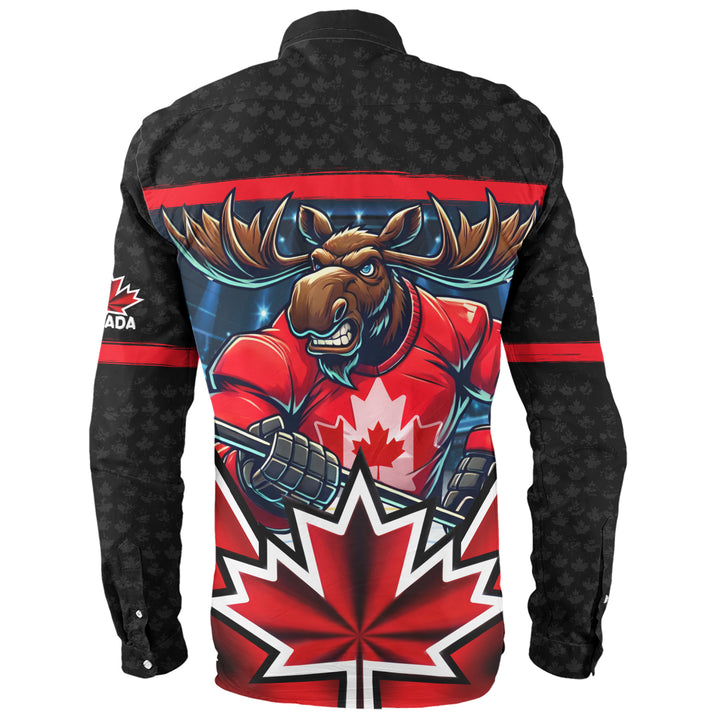 Canada Long Sleeve Shirt Maple Moose Hockey Warrior