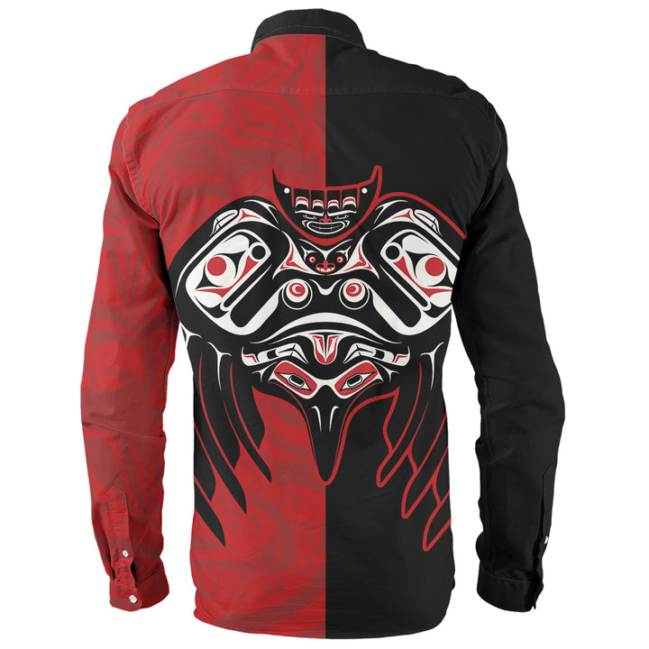 Canada Long Sleeve Shirt Red And Black Haida Raven Guardian