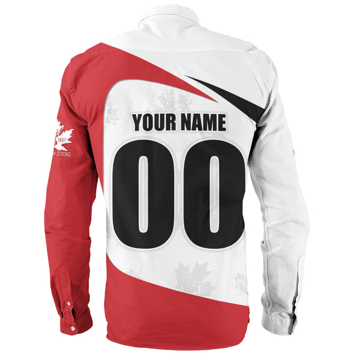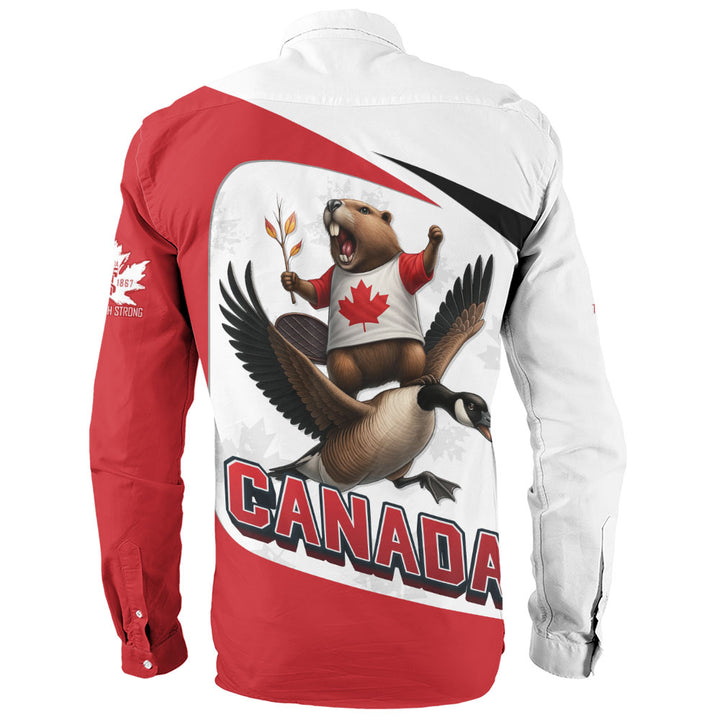 - Lapel collar, long sleeves, concealed placket, button closure.