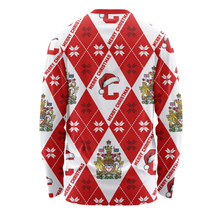 Canada Long Sleeve T-Shirt Christmas Argyle Pattern With Royal Crest