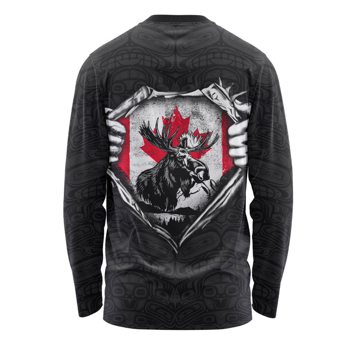 Canada Long Sleeve T-Shirt Haida Maple Flag Moose Legacy