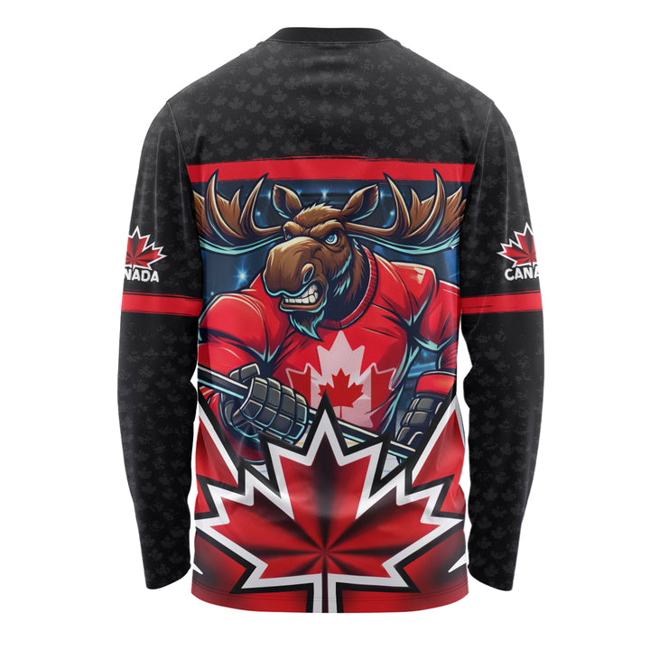 Canada Long Sleeve T-Shirt Maple Moose Hockey Warrior