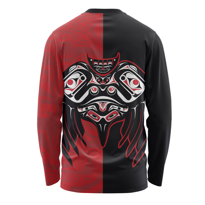 Canada Long Sleeve T-Shirt Red And Black Haida Raven Guardian