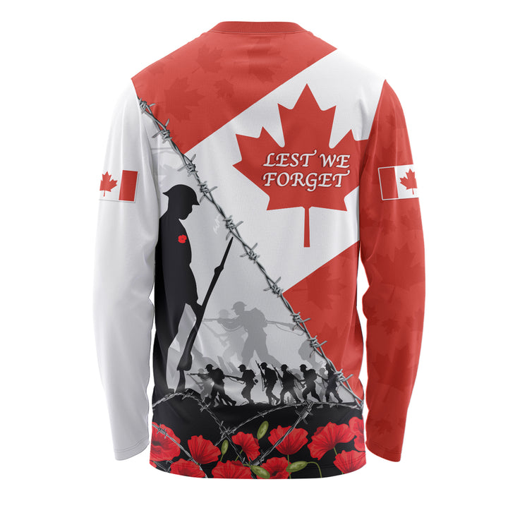 Canada Long Sleeve T-Shirt Remembrance Day Poppy Flower And Barbed Wire
