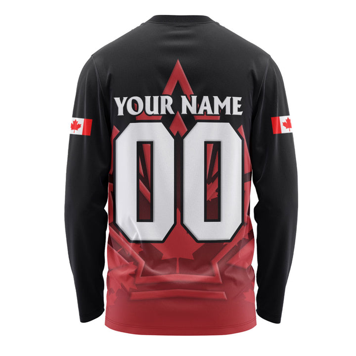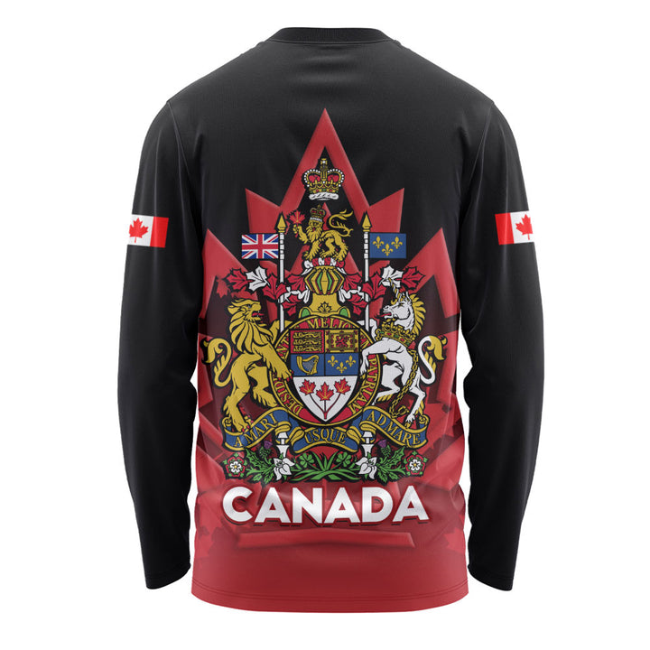 Canada Long Sleeve T-Shirt Royal Red Black National Emblem Of Canada
