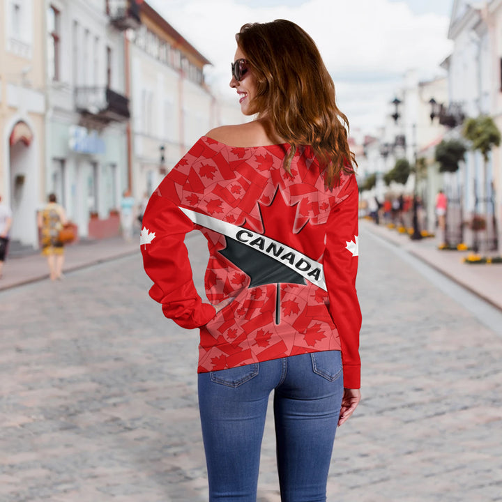 Canada Off Shoulder Sweatshirt Born Canadian Built Proud