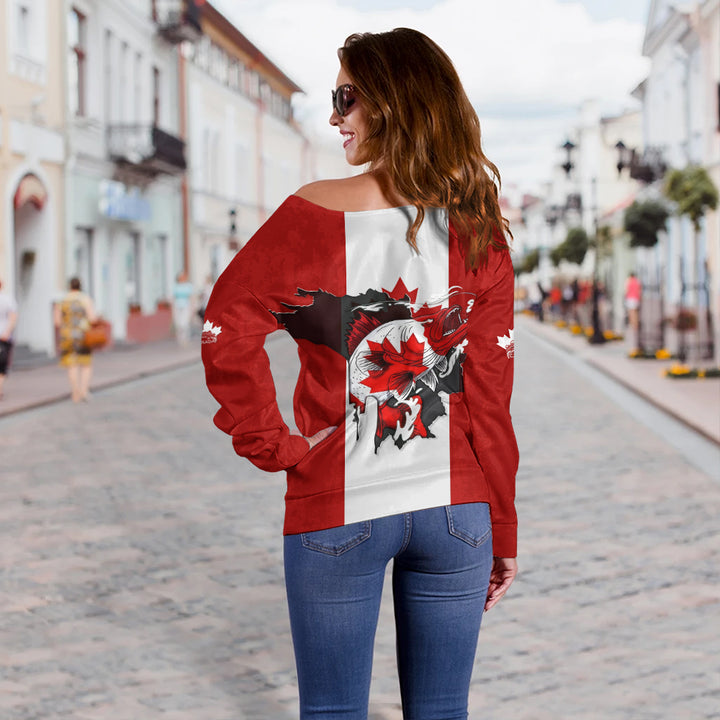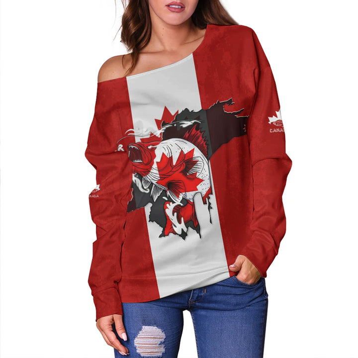 Canada Off Shoulder Sweatshirt Born To Fish Proud To Be Canadian