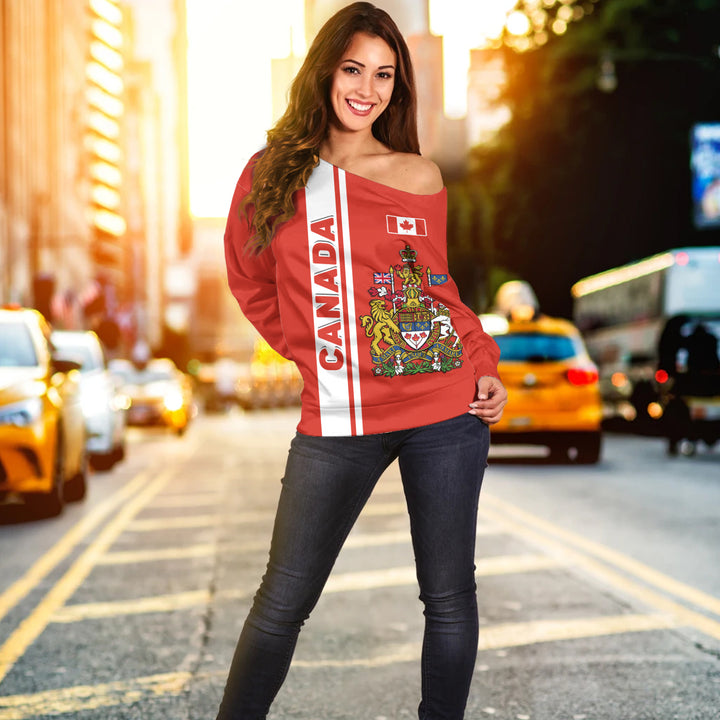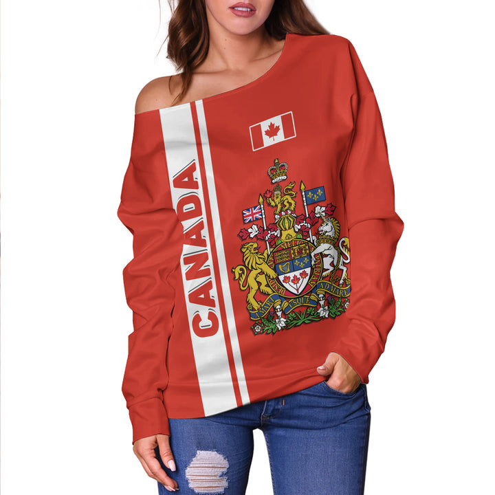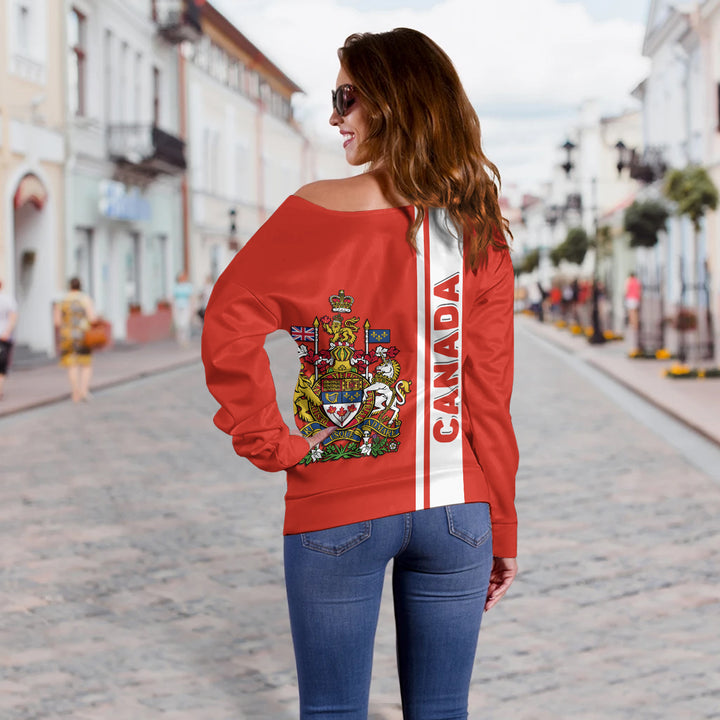 Canada Off Shoulder Sweatshirt Canada Coat Of Arms Simple Style