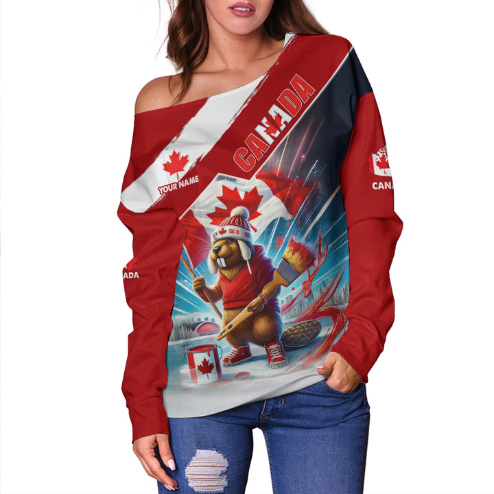 Canada Off Shoulder Sweatshirt Canada Day Beaver Pride Edition