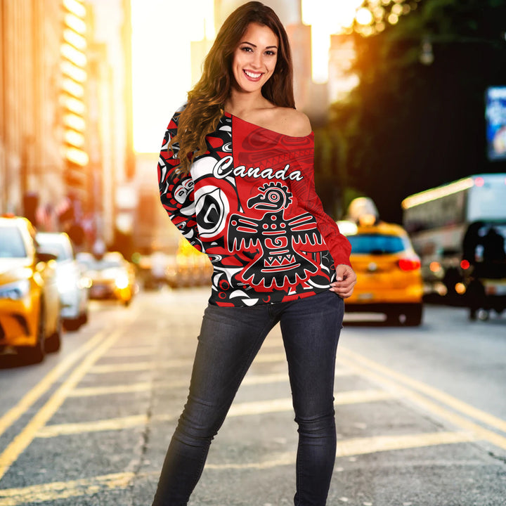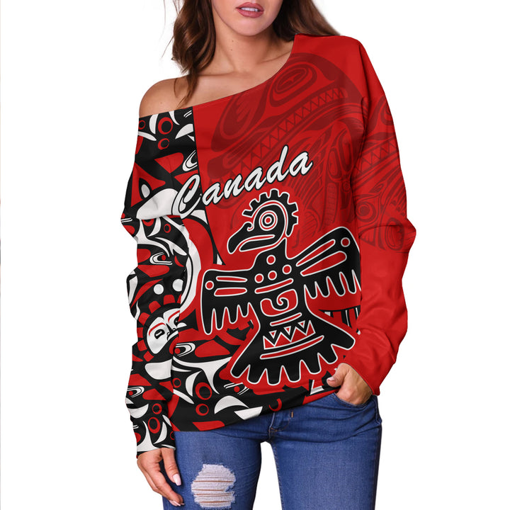 Canada Off Shoulder Sweatshirt Canada Eagle’s Might Haida Heritage
