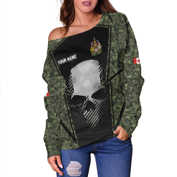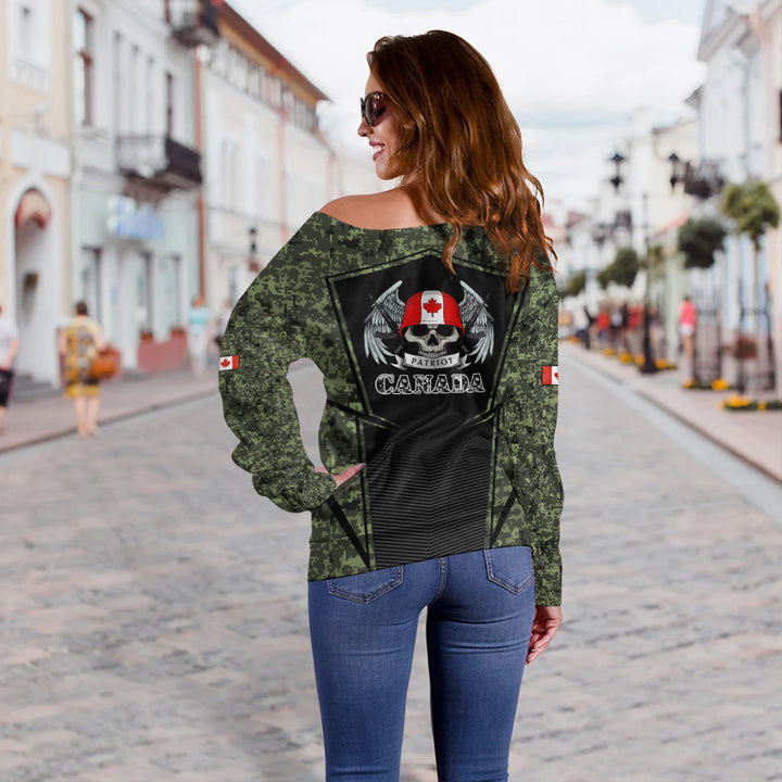 Canada Off Shoulder Sweatshirt Canada Military Skull Honor Camo Edition