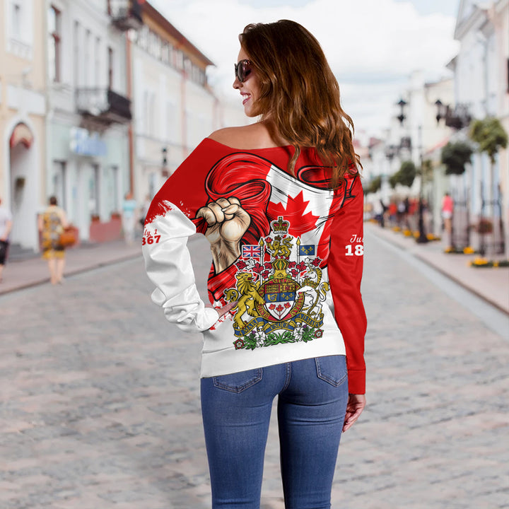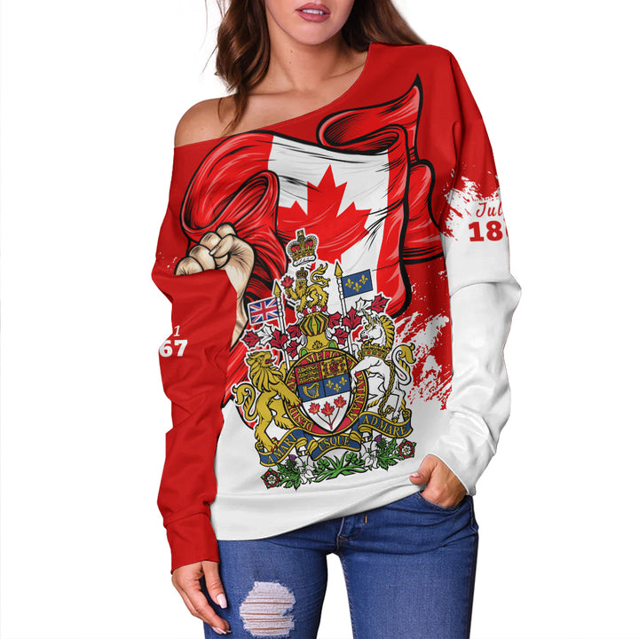 Canada Off Shoulder Sweatshirt Canada Power Pride And Heritage Crest