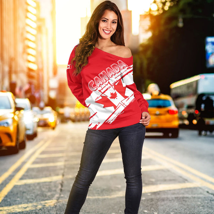 Canada Off Shoulder Sweatshirt Canada Pride Diagonal