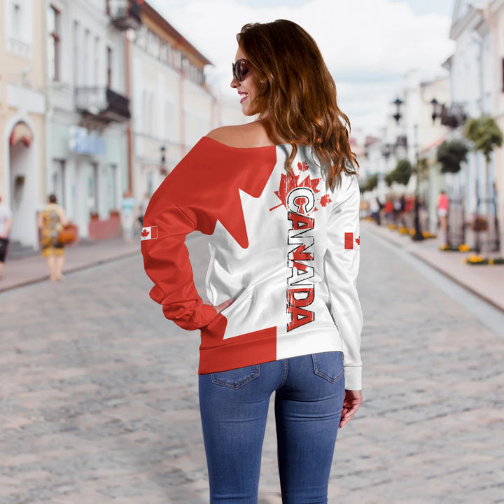Canada Off Shoulder Sweatshirt Canada Red And White Boldness