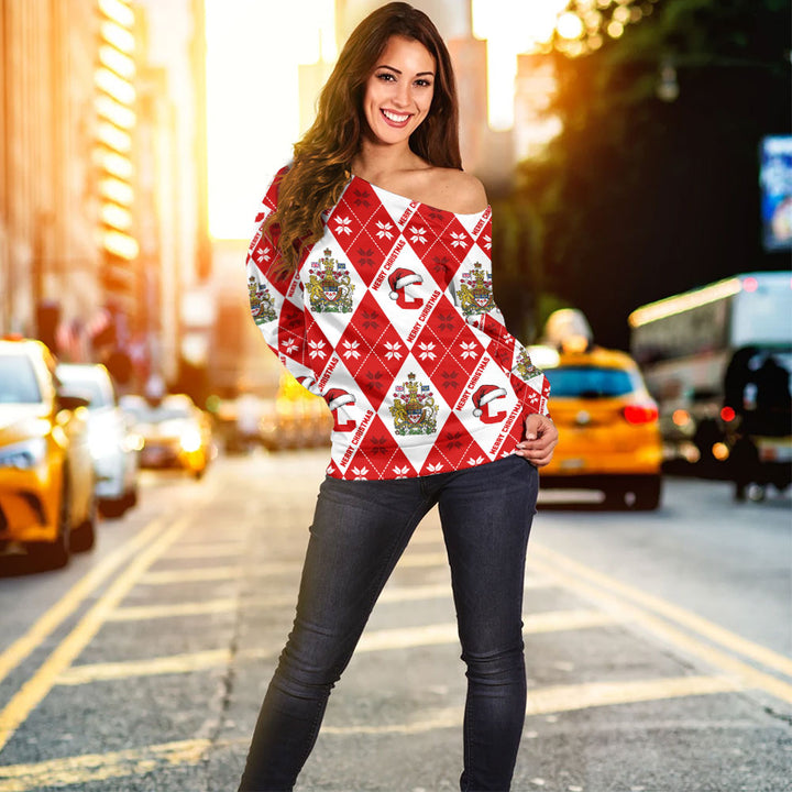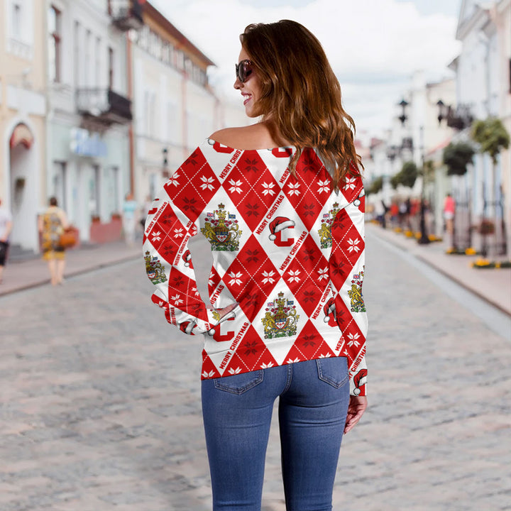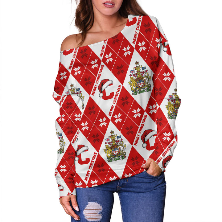 Canada Off Shoulder Sweatshirt Christmas Argyle Pattern With Royal Crest
