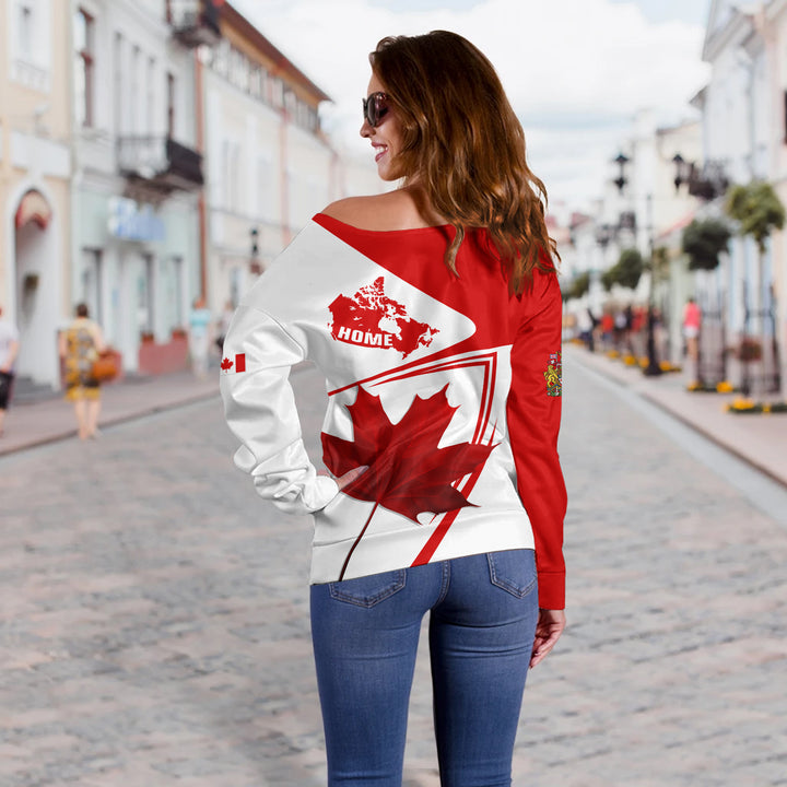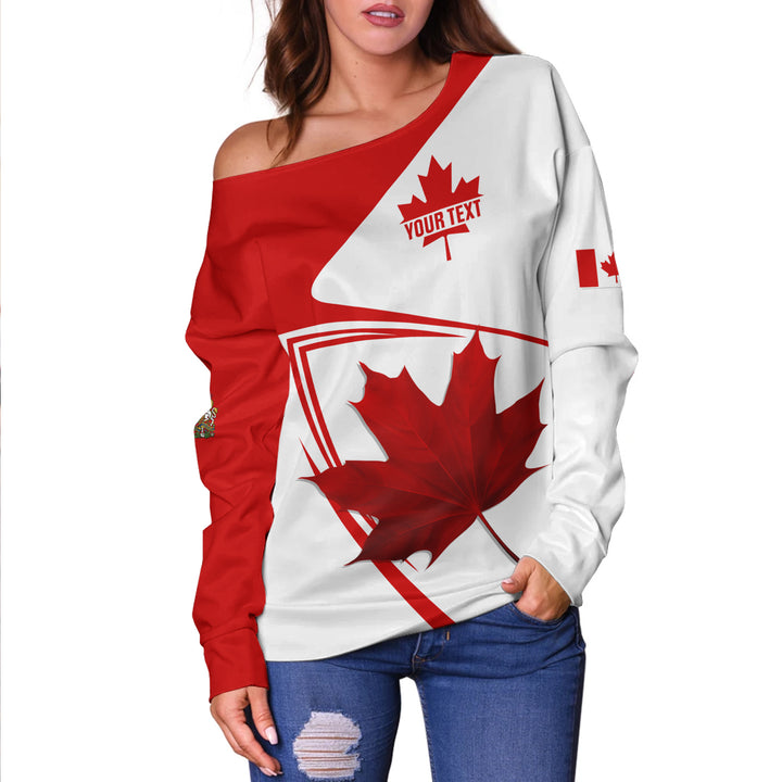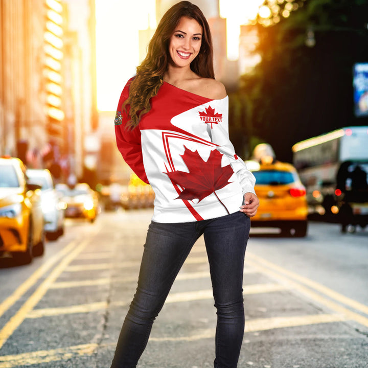 Canada Off Shoulder Sweatshirt Custom Canada Maple Leaf Red And White