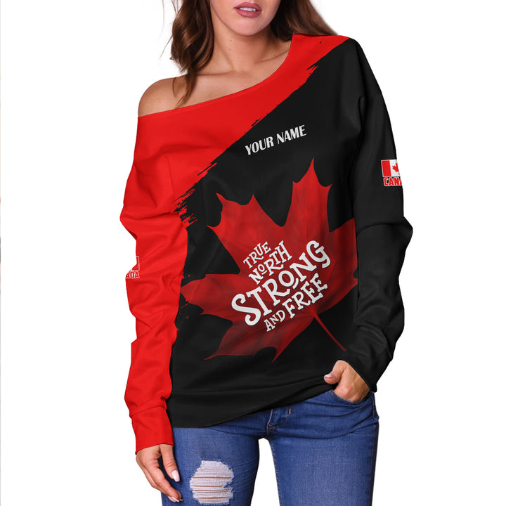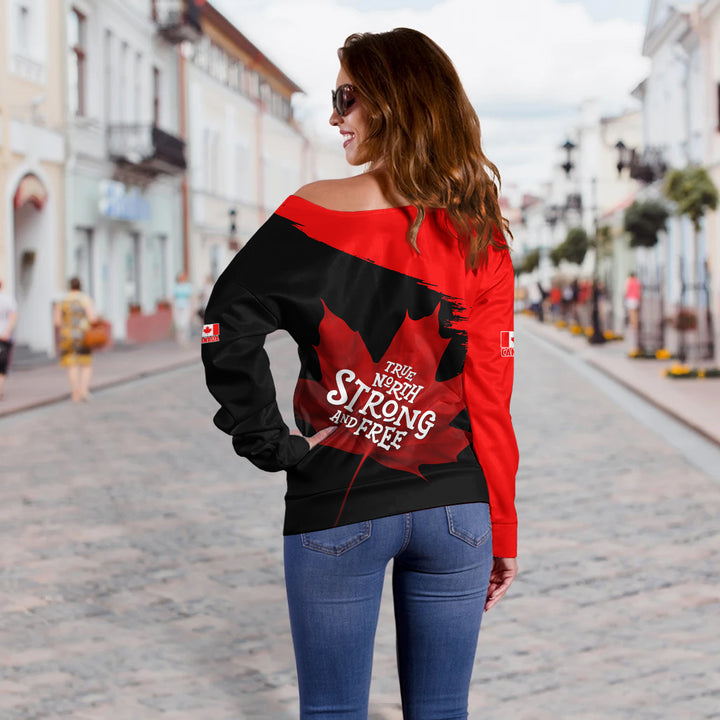Canada Off Shoulder Sweatshirt Custom Maple Power Blackout