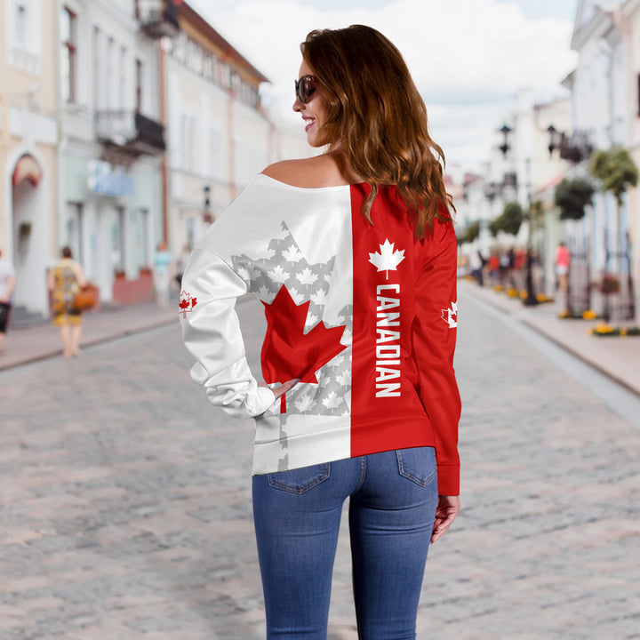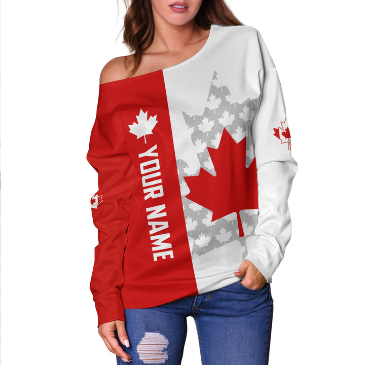 Canada Off Shoulder Sweatshirt Custom True North Signature