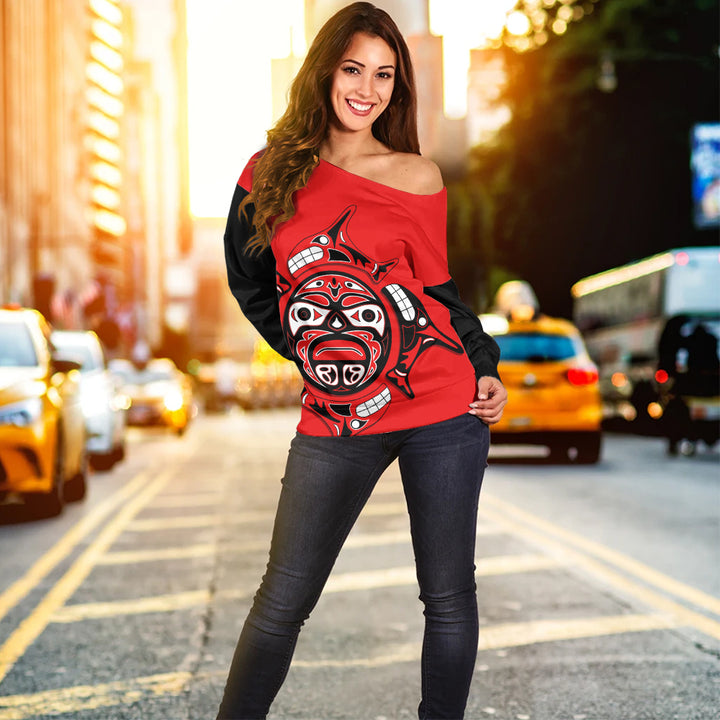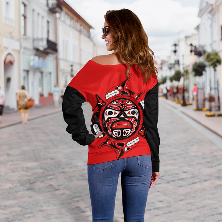 Canada Off Shoulder Sweatshirt Echoes Of The Sun Indigenous Pride