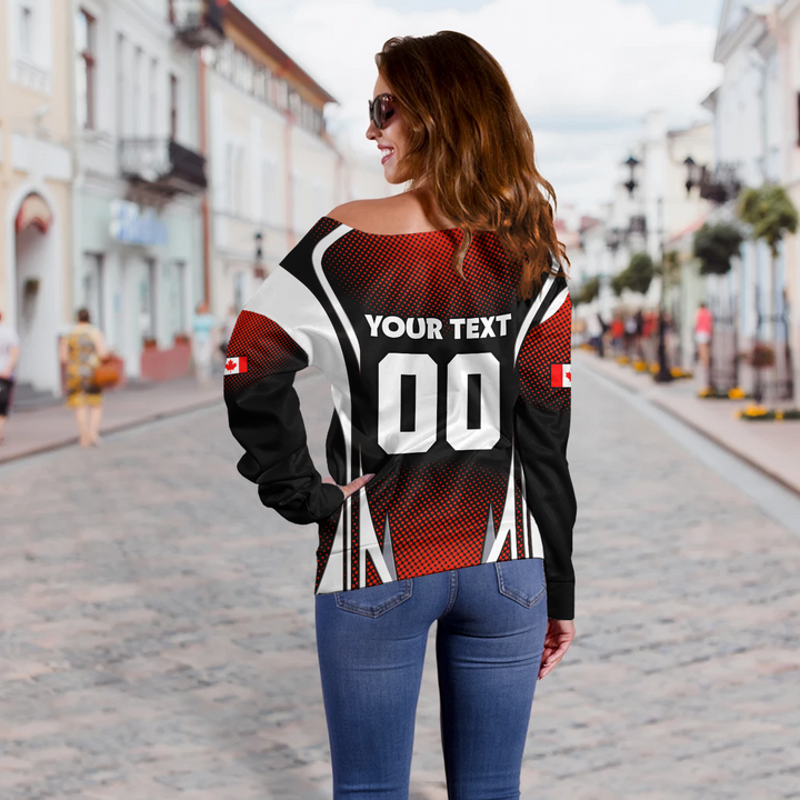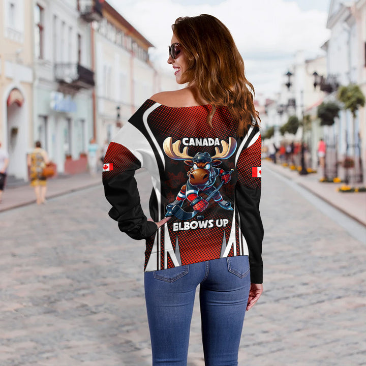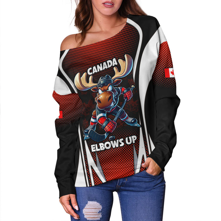 Canada Off Shoulder Sweatshirt Fight Ready Moose Canada Hockey Attitude