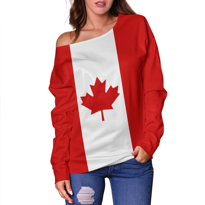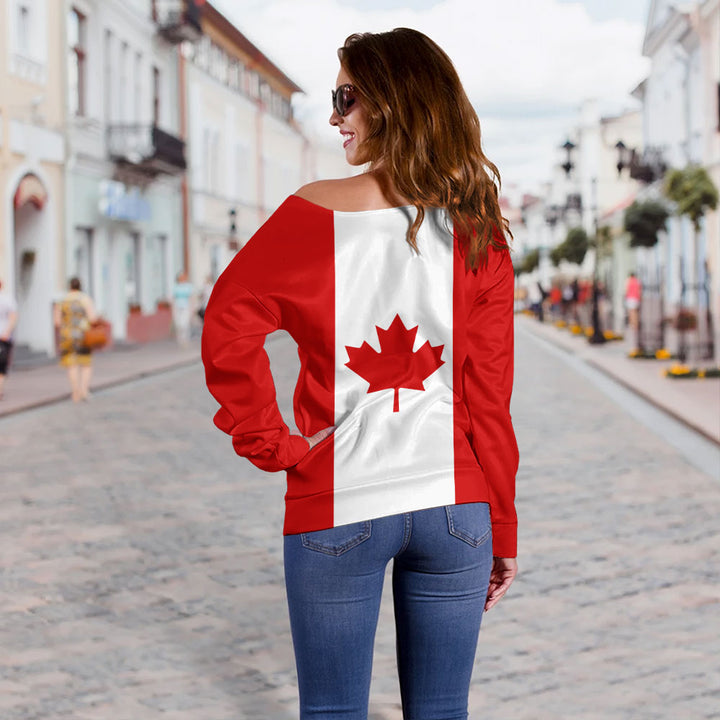 Canada Off Shoulder Sweatshirt Flag Minimalist Pride Style