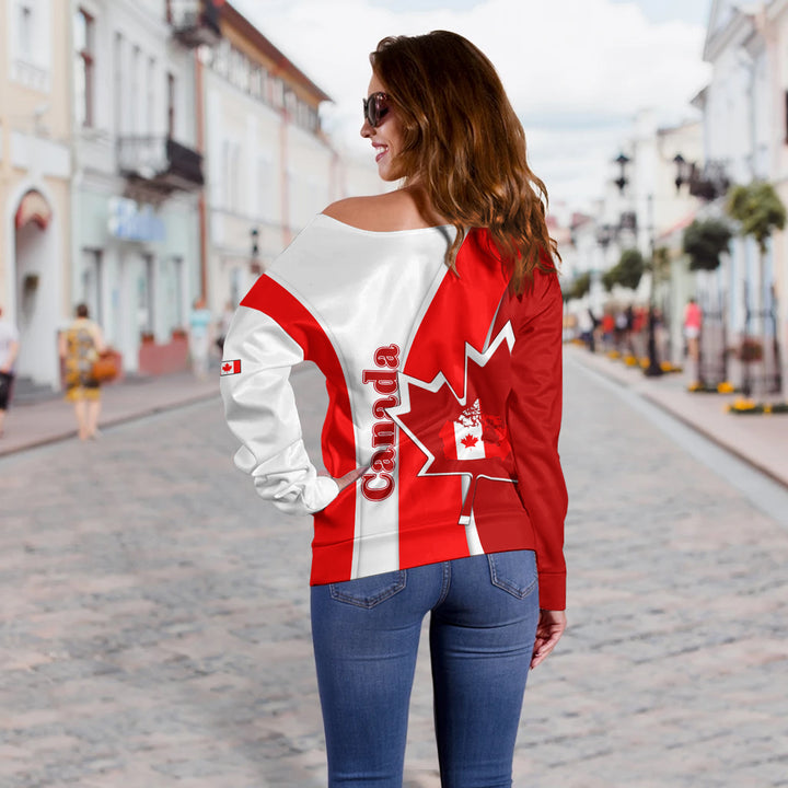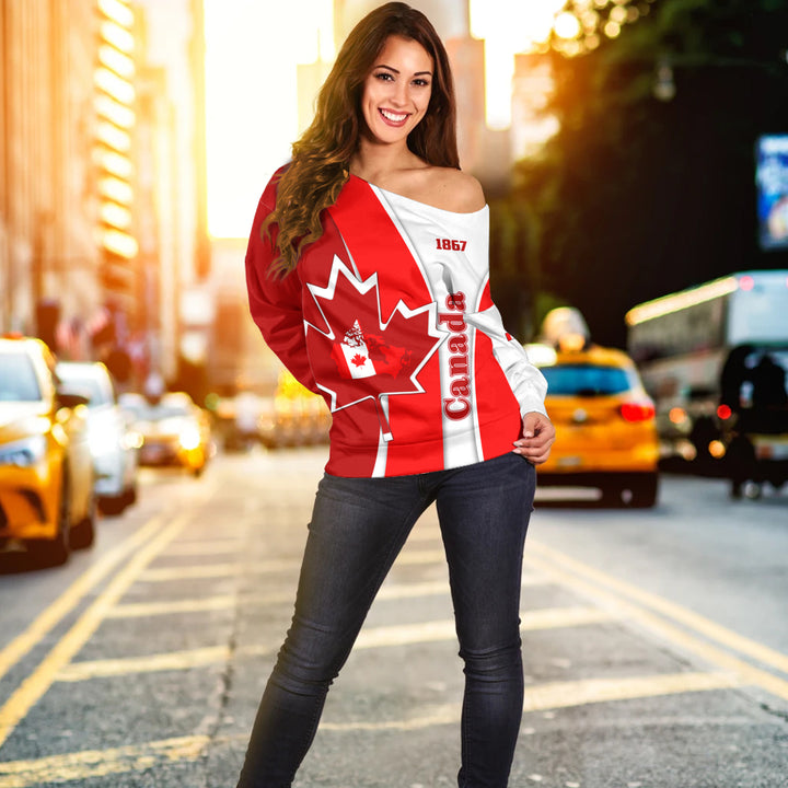 Canada Off Shoulder Sweatshirt Founding Year Spirit