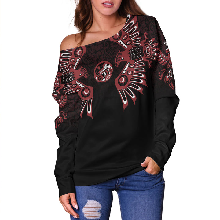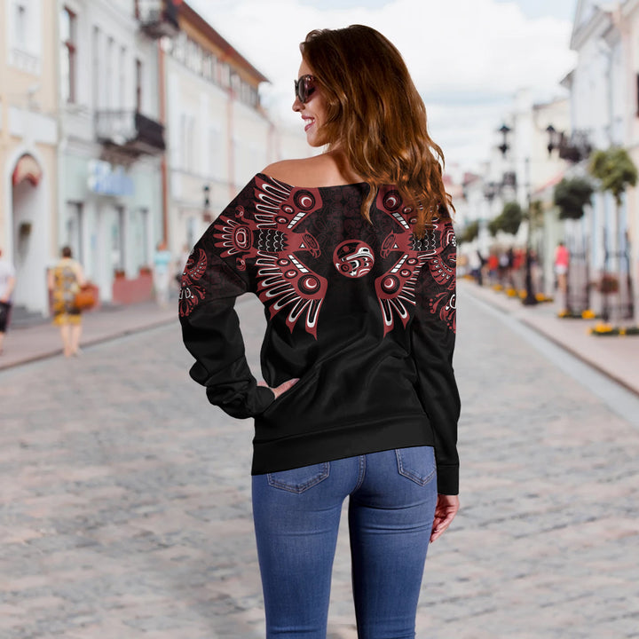 Canada Off Shoulder Sweatshirt Haida Echo Of The Wild North