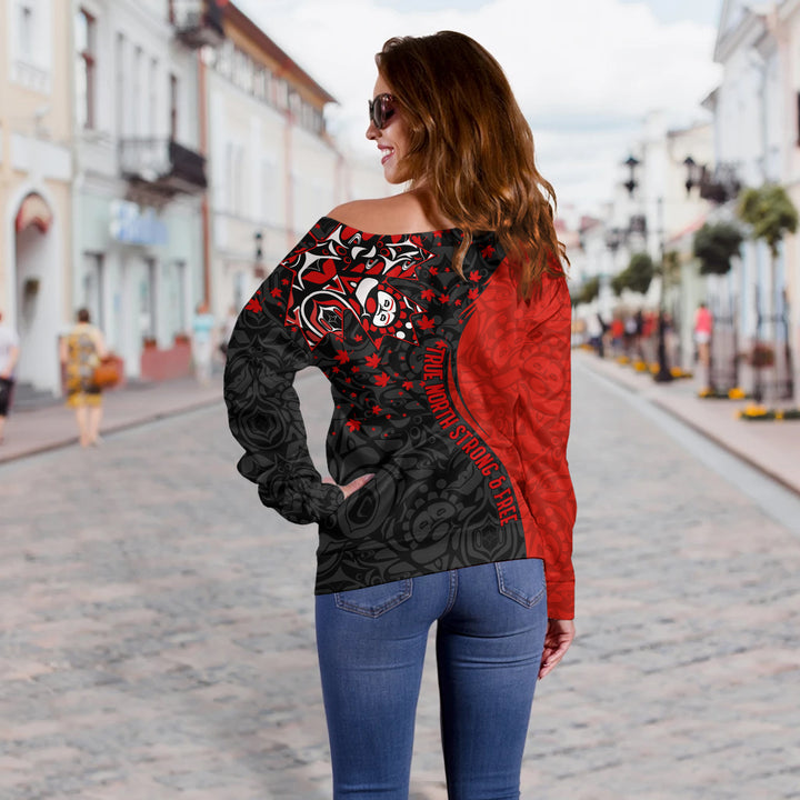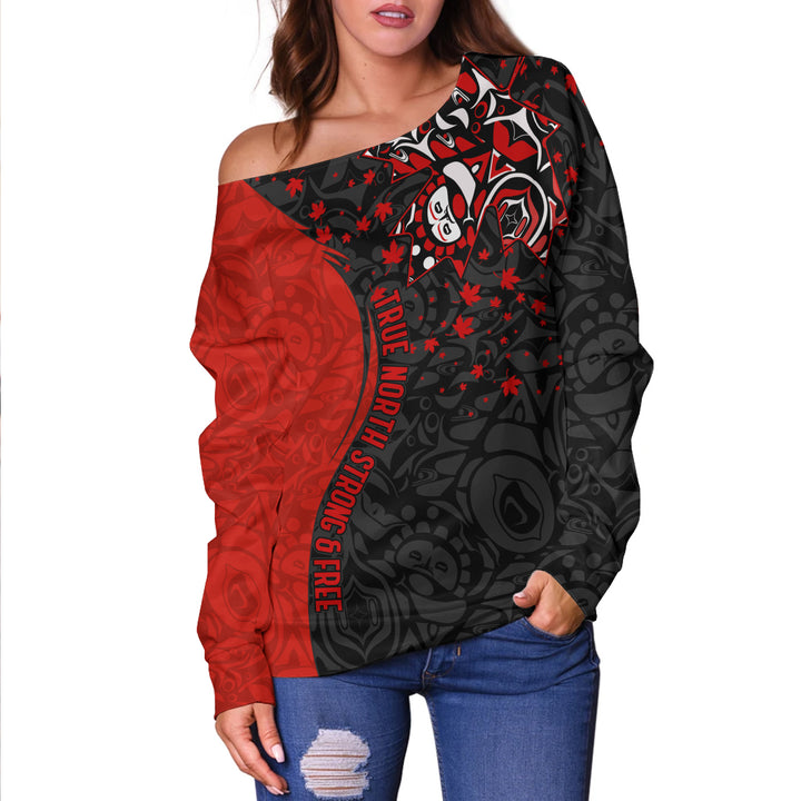 Canada Off Shoulder Sweatshirt Haida Flame Canada Proud